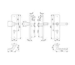 Sada kolíka, skrutiek a montážneho kľúča pre kľučku-kľučku na štítok 2210 TT3 London na profil pre rozmery 77-82 mm.
