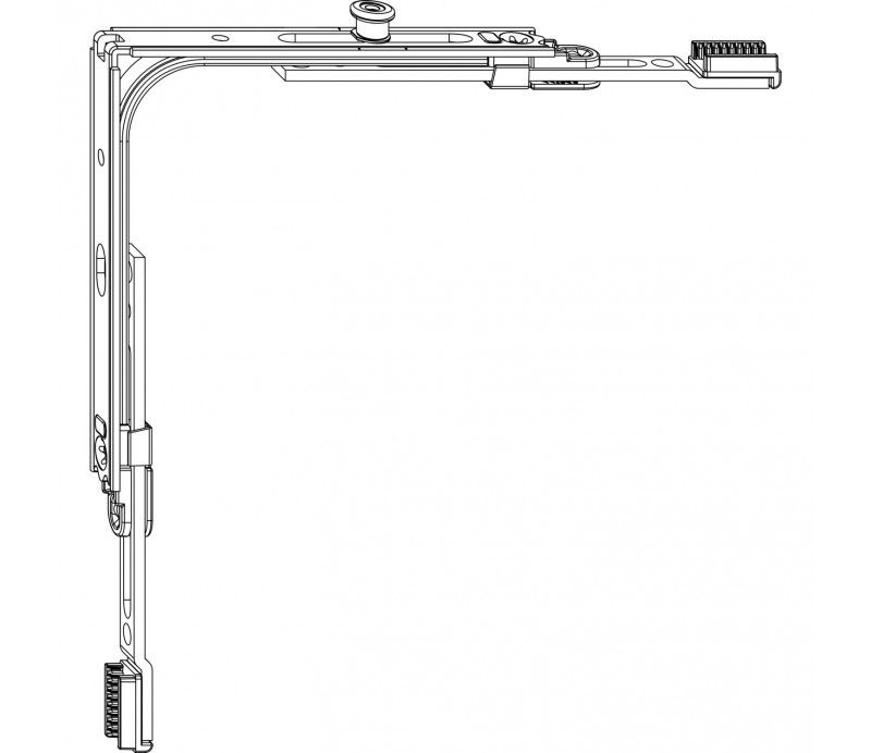 je vrchný rohový prevod / rohové vedenie /, ktorý sa montuje do otváravých, otváravo-sklopných a sklopných okien, jednokrídlových a dvoj-krídlových, okutých s kovaním MACO MULTI-MATIC. Spája zvislý otváravo-sklopný prevod s vodorovnou nožnicou pri otváravo-sklopných oknách, zvislý otváravo-sklopný prevod s vodorovným predĺžením pri otváravých oknách alebo sklopný prevod so zvislým predľžením pri sklopných oknách. Hríbikový /IS / uzáver zabezpečuje zvýšenú ochranu proti násilnému otvoreniu okna.