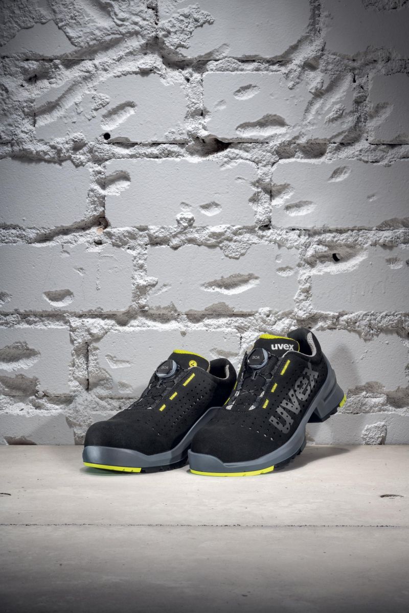 Ochranná obuv uvex 1 s triedami ochrany S1 a S2 optimálne chráni a podporuje ľudské telo pri jeho individuálnych pohyboch. Na základe najnovších poznatkov z fyziologického výskumu a inovačných technológií sa zníži zaťaženie, ktoré pôsobí pri práci na pohybovú sústavu, a optimalizuje sa pohodlie nositeľa bezpečnostnej obuvi. Ergonomická konštrukcia bezpečnostnej obuvi uvex 1 ponúka perfektnú rovnováhu medzi ochranou a pohodlím. Dizajn vás presvedčí čistými líniami a jednoduchosťou.
