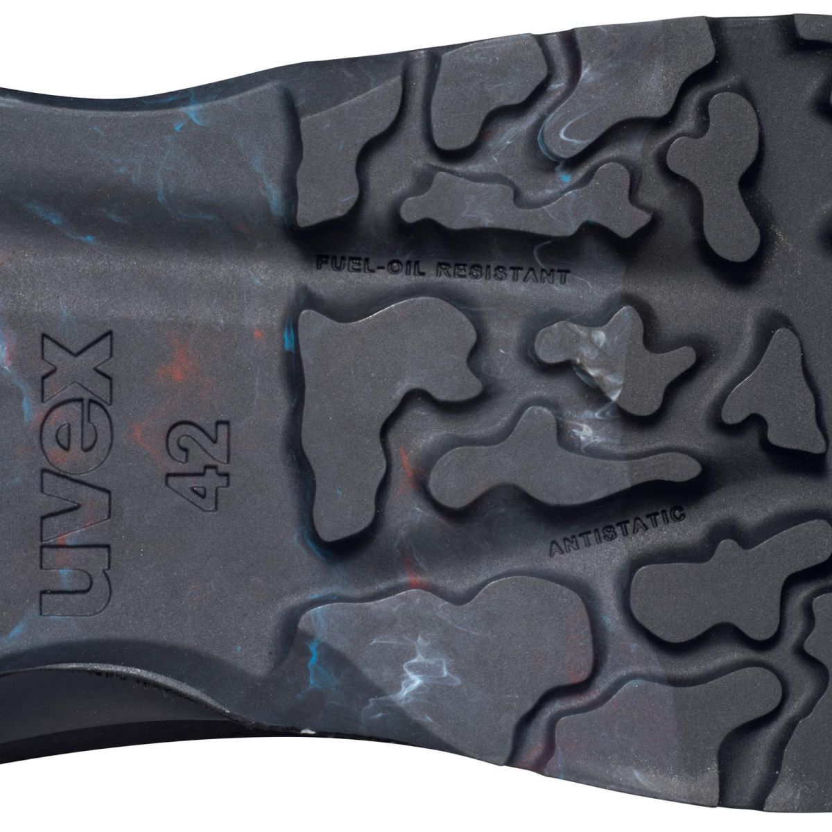 - podošva uvex x-tended grip planet z TPU odolná proti oderu s 10 % podielom recyklovaného granulátu vyrobeného z prebytočných materiálov pochádzajúcich z vlastnej produkcie